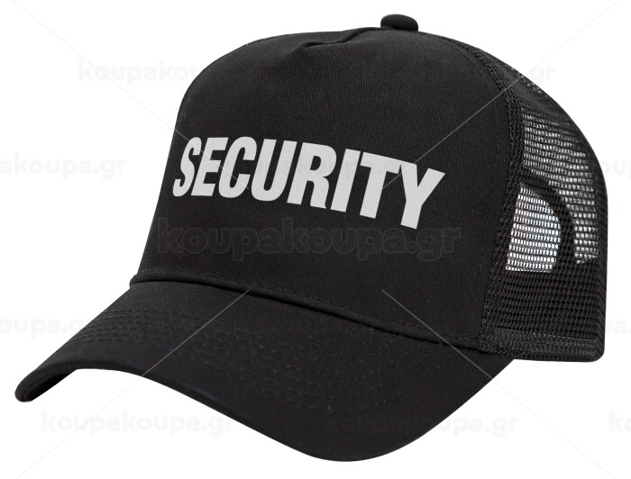 Security, Trucker Hat with Mesh, Black, (COTTON, KIDS, UNISEX, ONE SIZE)