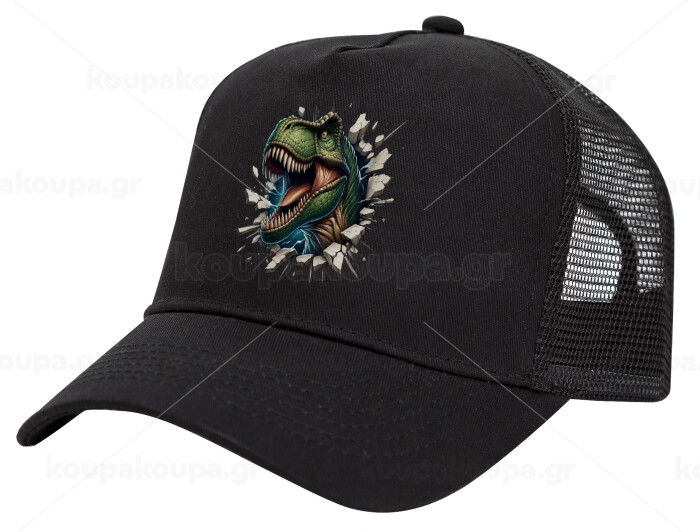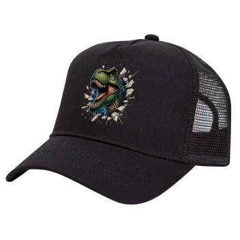 Dinosaur break wall, Trucker Hat with Mesh, Black, (COTTON, KIDS, UNISEX, ONE SIZE)
