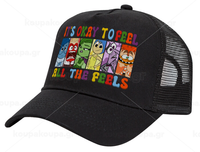 Inside Out It's Okay To Feel All The Feels , Trucker Hat with Mesh, Black, (COTTON, KIDS, UNISEX, ONE SIZE)
