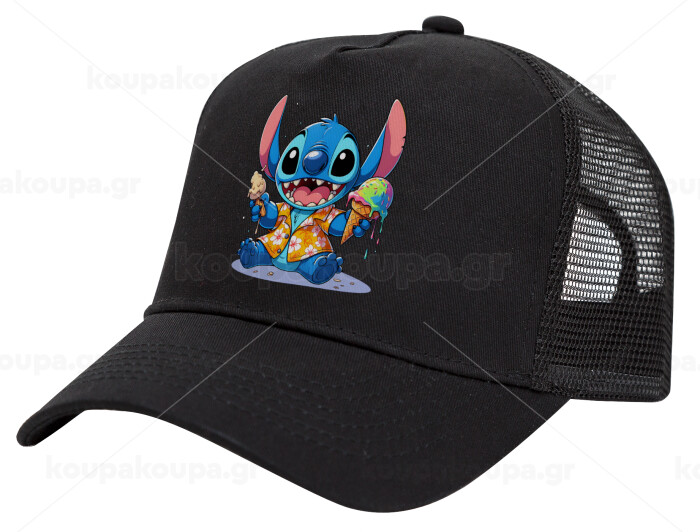 Stitch Ice cream, Trucker Hat with Mesh, Black, (COTTON, KIDS, UNISEX, ONE SIZE)