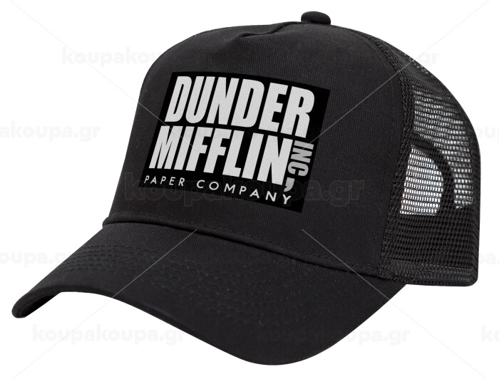 Dunder Mifflin, Inc Paper Company, Trucker Hat with Mesh, Black, (COTTON, KIDS, UNISEX, ONE SIZE)