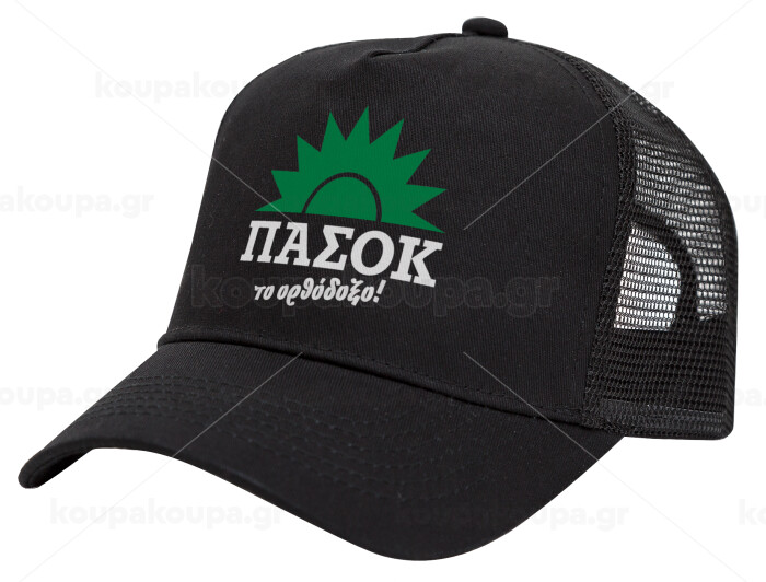 PASOK the orthodoxo, Trucker Hat with Mesh, Black, (COTTON, KIDS, UNISEX, ONE SIZE)