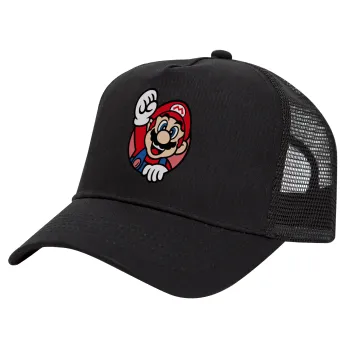 Super mario win, Trucker Hat with Mesh, Black, (COTTON, KIDS, UNISEX, ONE SIZE)