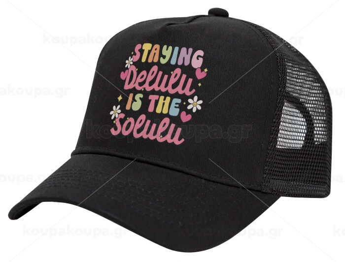 Delulu, Trucker Hat with Mesh, Black, (COTTON, KIDS, UNISEX, ONE SIZE)