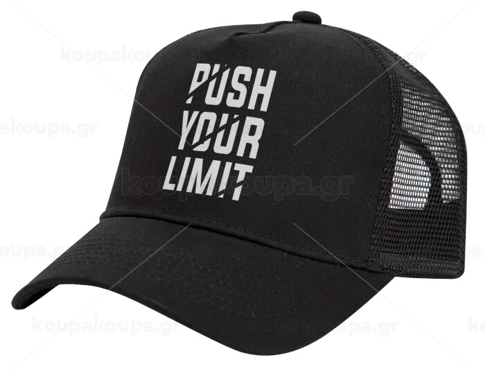 Push your limit, Trucker Hat with Mesh, Black, (COTTON, KIDS, UNISEX, ONE SIZE)
