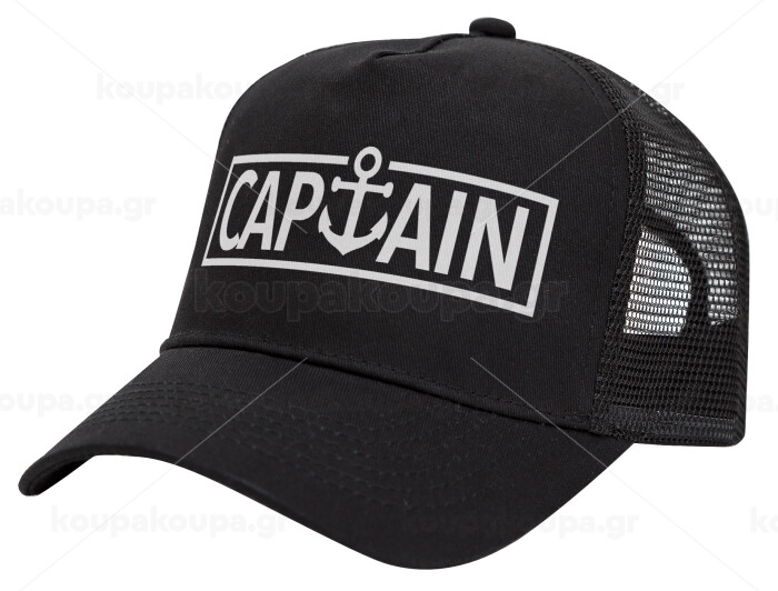 CAPTAIN, Trucker Hat with Mesh, Black, (COTTON, KIDS, UNISEX, ONE SIZE)