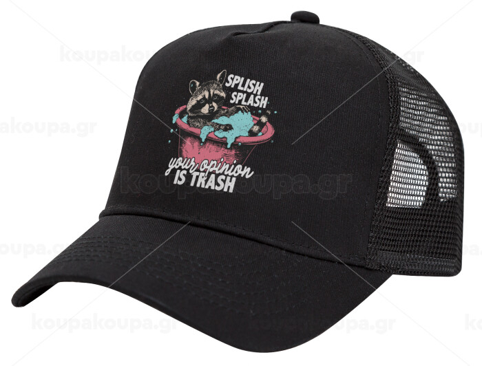 Splish splash your opinion is trash, Trucker Hat with Mesh, Black, (COTTON, KIDS, UNISEX, ONE SIZE)