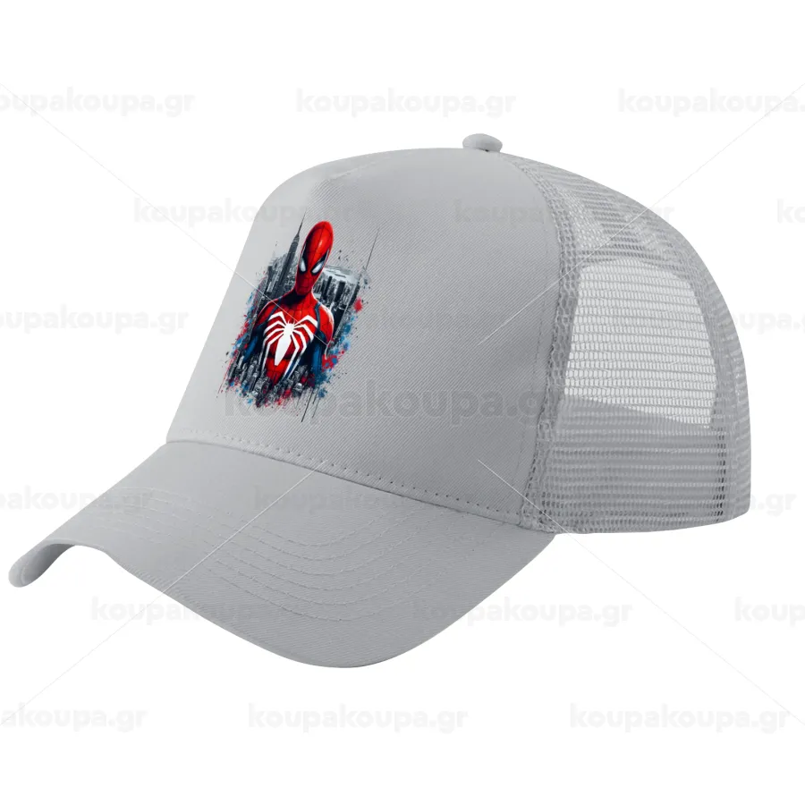 Spiderman City, Trucker Hat with Mesh, GREY, (COTTON, KIDS, UNISEX, ONE SIZE)