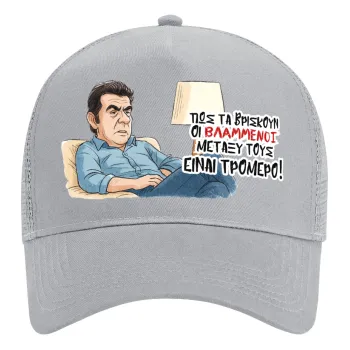 ΠΩΣ ΤΑ ΒΡΙΣΚΟΥΝ ΟΙ ΒΛΑ....ΝΟΙ ΜΕΤΑΞΥ ΤΟΥΣ, ΕΙΝΑΙ ΤΡΟΜΕΡΟ!!!, Trucker Hat with Mesh, GREY, (COTTON, KIDS, UNISEX, ONE SIZE)