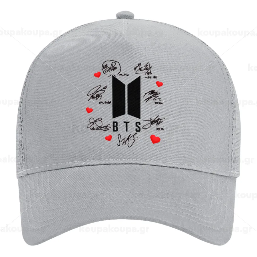 BTS signs, Trucker Hat with Mesh, GREY, (COTTON, KIDS, UNISEX, ONE SIZE)