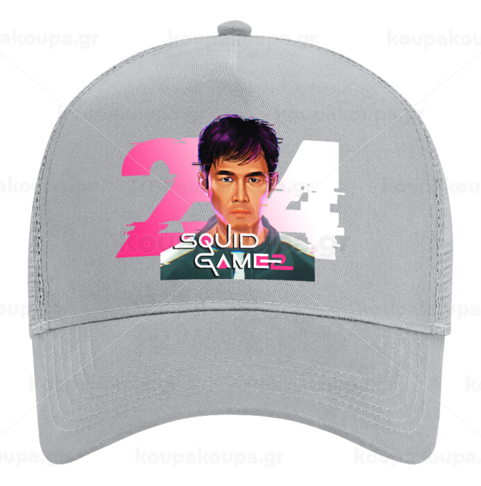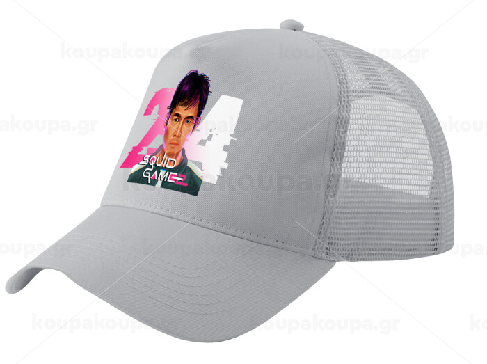 Squid game 456 Gi-Hun, Trucker Hat with Mesh, GREY, (COTTON, KIDS, UNISEX, ONE SIZE)