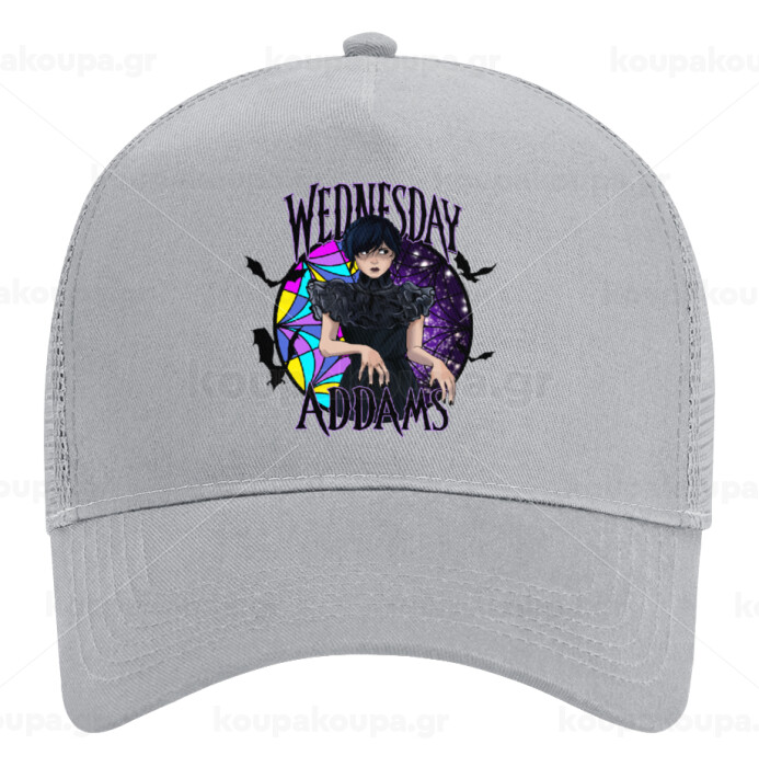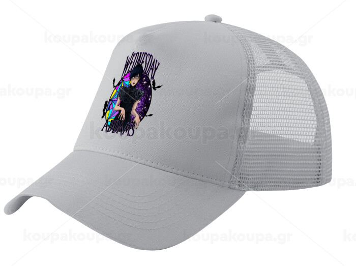 Wednesday Jenna Ortega, Trucker Hat with Mesh, GREY, (COTTON, KIDS, UNISEX, ONE SIZE)
