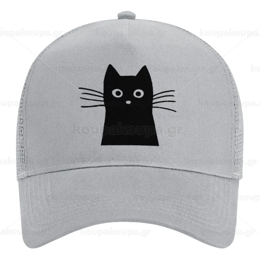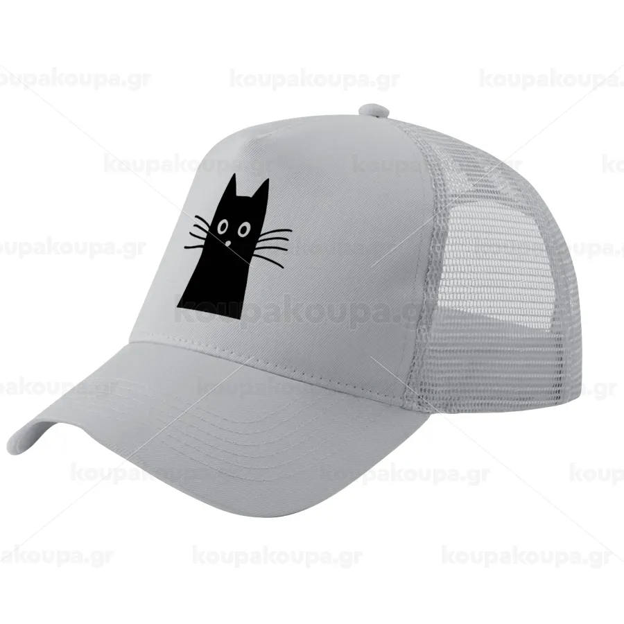 Black Cat, Trucker Hat with Mesh, GREY, (COTTON, KIDS, UNISEX, ONE SIZE)