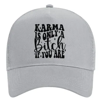 Karma is Only A Bitch if You Are, Trucker Hat with Mesh, GREY, (COTTON, KIDS, UNISEX, ONE SIZE)