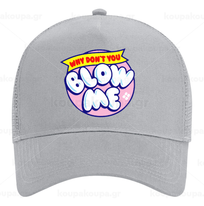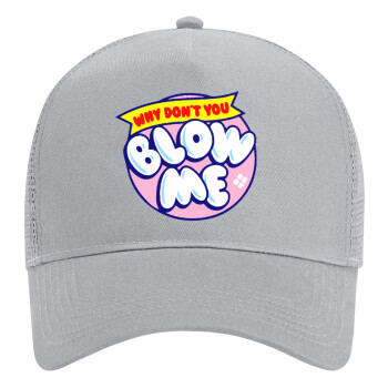 Why Don't You Blow Me Funny, Trucker Hat with Mesh, GREY, (COTTON, KIDS, UNISEX, ONE SIZE)