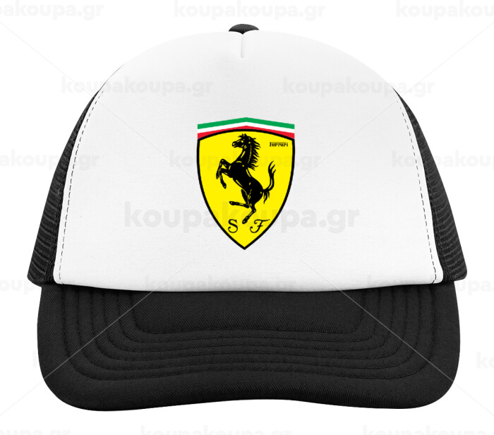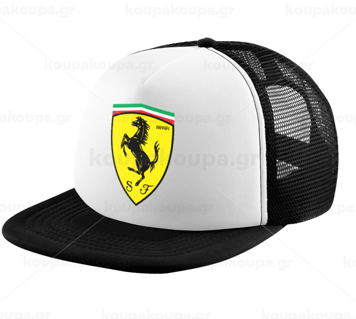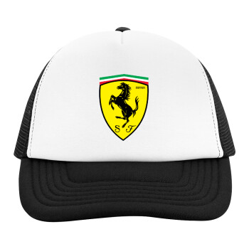 Ferrari, Child's Soft Trucker Hat with BLACK/WHITE Mesh (POLYESTER, CHILD, ONE SIZE)