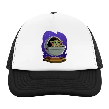 Baby Yoda mandalorian, Child's Soft Trucker Hat with BLACK/WHITE Mesh (POLYESTER, CHILD, ONE SIZE)