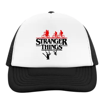 Stranger Things upside down, Child's Soft Trucker Hat with BLACK/WHITE Mesh (POLYESTER, CHILD, ONE SIZE)