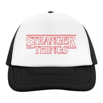 Stranger Things Logo, Child's Soft Trucker Hat with BLACK/WHITE Mesh (POLYESTER, CHILD, ONE SIZE)