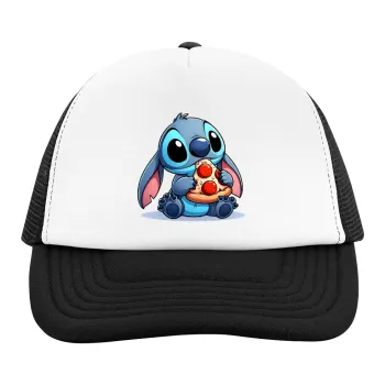 Stitch Pizza, Child's Soft Trucker Hat with BLACK/WHITE Mesh (POLYESTER, CHILD, ONE SIZE)