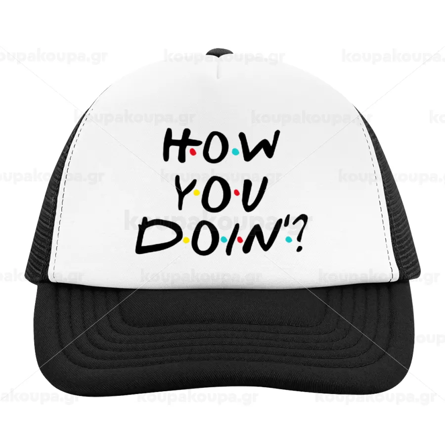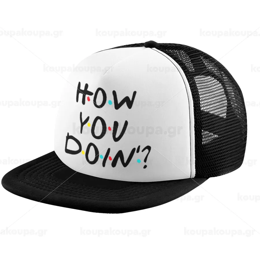 Friends How You Doin'?, Child's Soft Trucker Hat with BLACK/WHITE Mesh (POLYESTER, CHILD, ONE SIZE)