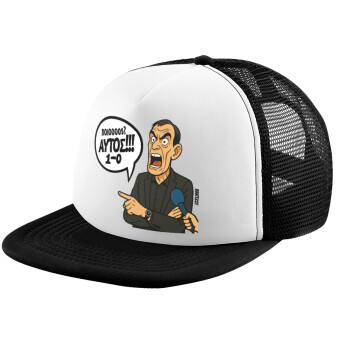 Μπαρτζό, Ποιος? Αυτός!!! 1-0, Child's Soft Trucker Hat with BLACK/WHITE Mesh (POLYESTER, CHILD, ONE SIZE)