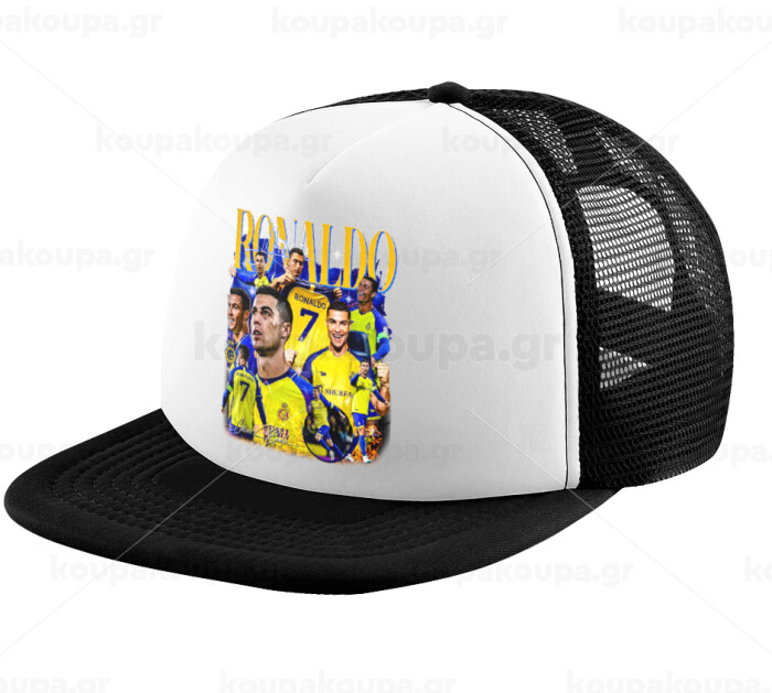 Cristiano Ronaldo Al Nassr, Child's Soft Trucker Hat with BLACK/WHITE Mesh (POLYESTER, CHILD, ONE SIZE)