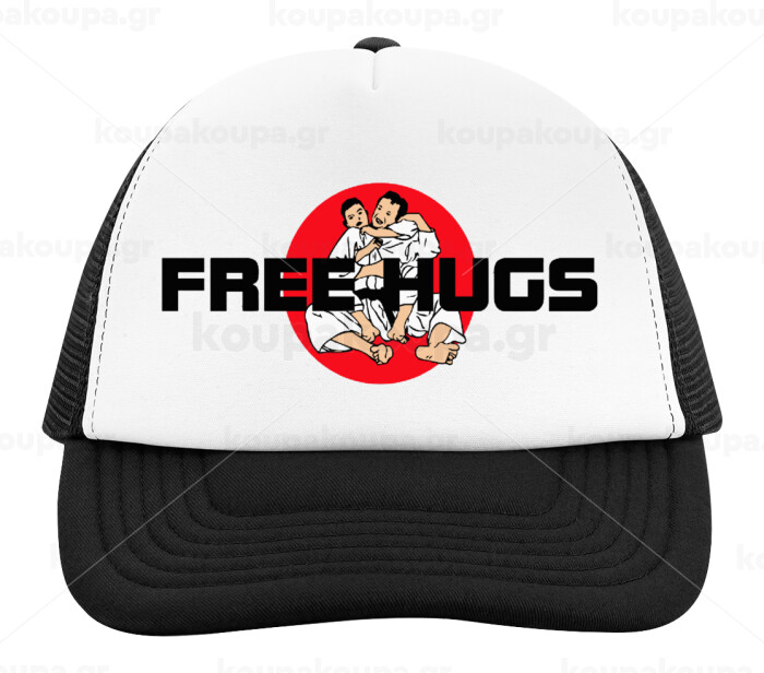 JUDO free hugs, Child's Soft Trucker Hat with BLACK/WHITE Mesh (POLYESTER, CHILD, ONE SIZE)