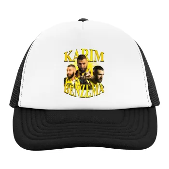 UNISEXONE SIZEFor ages 4-14 yearsFive-panel Soft Trucker hat with meshComposition: 100% Polyester, 160g/m²Mesh at the backSoft forehead with 5mm sponge on the foreheadCurved visor with 6 stitchesAdjustable plastic closure