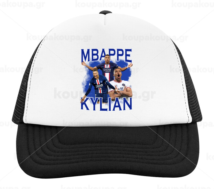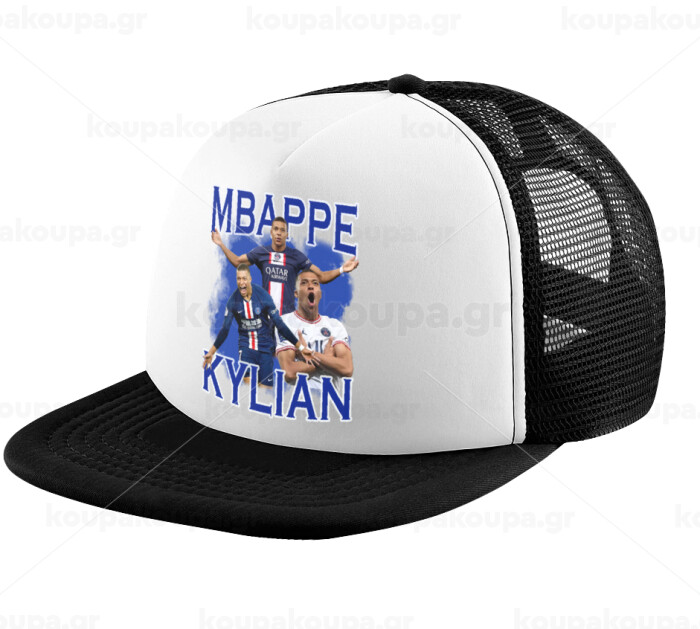 Kylian Mbappé, Child's Soft Trucker Hat with BLACK/WHITE Mesh (POLYESTER, CHILD, ONE SIZE)