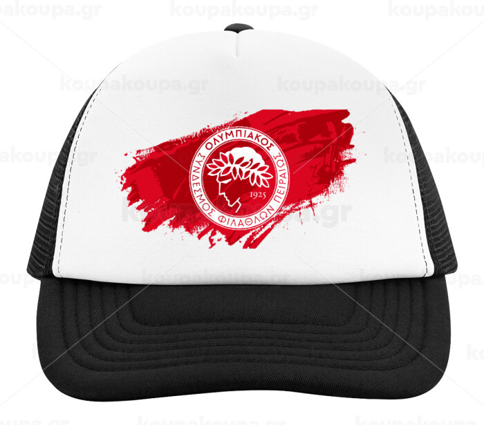 Olympiacos F.C., Child's Soft Trucker Hat with BLACK/WHITE Mesh (POLYESTER, CHILD, ONE SIZE)