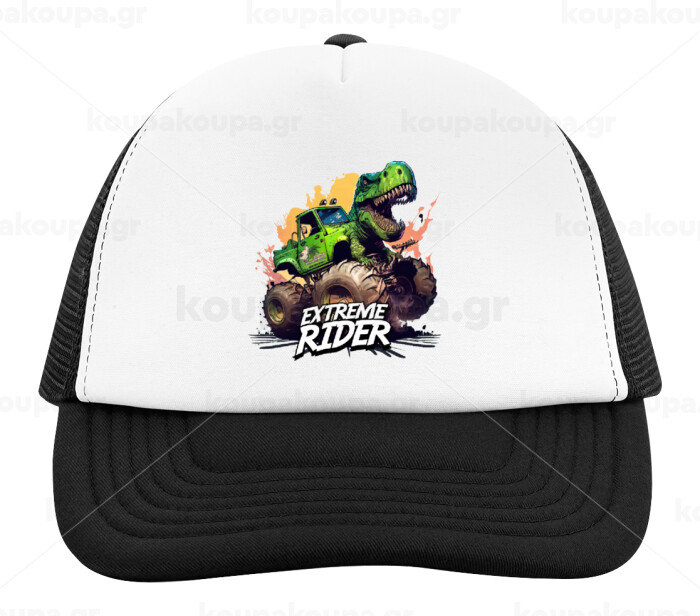 Extreme rider Dyno, Child's Soft Trucker Hat with BLACK/WHITE Mesh (POLYESTER, CHILD, ONE SIZE)