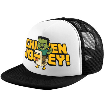 Chicken Jockey, Child's Soft Trucker Hat with BLACK/WHITE Mesh (POLYESTER, CHILD, ONE SIZE)