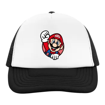 Super mario win, Child's Soft Trucker Hat with BLACK/WHITE Mesh (POLYESTER, CHILD, ONE SIZE)