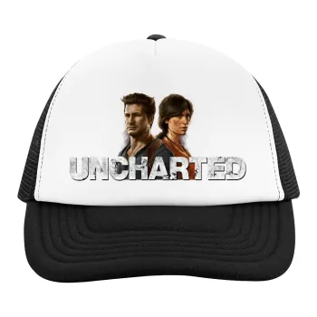 Uncharted, Child's Soft Trucker Hat with BLACK/WHITE Mesh (POLYESTER, CHILD, ONE SIZE)