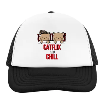 Catflix and Chill, Child's Soft Trucker Hat with BLACK/WHITE Mesh (POLYESTER, CHILD, ONE SIZE)