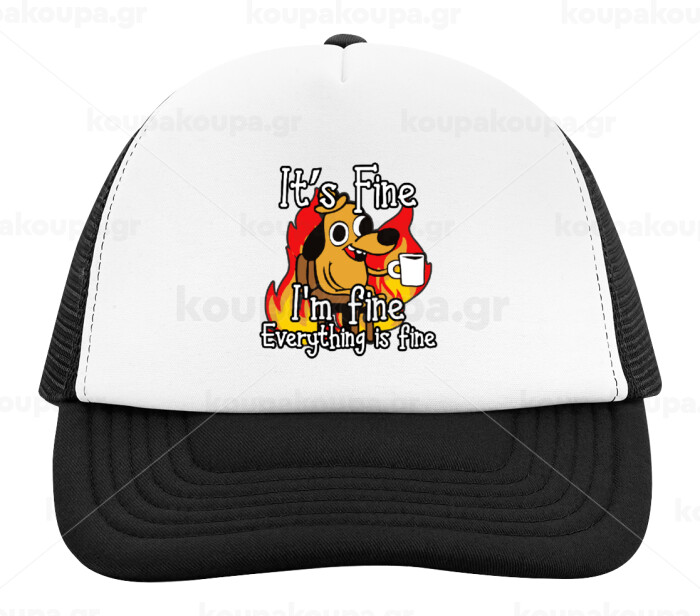 It's Fine I'm Fine Everything Is Fine, Child's Soft Trucker Hat with BLACK/WHITE Mesh (POLYESTER, CHILD, ONE SIZE)