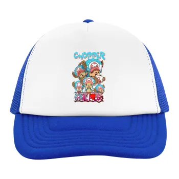 Chopper One Piece, Child's Soft Trucker Hat with Blue/White Mesh (POLYESTER, CHILD, ONE SIZE)