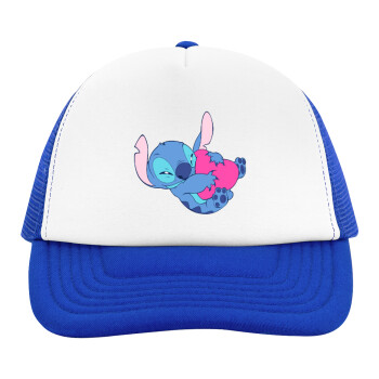 Lilo & Stitch hugs and hearts, Child's Soft Trucker Hat with Blue/White Mesh (POLYESTER, CHILD, ONE SIZE)