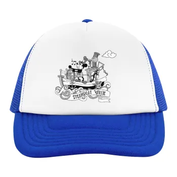 Mickey steamboat, Child's Soft Trucker Hat with Blue/White Mesh (POLYESTER, CHILD, ONE SIZE)
