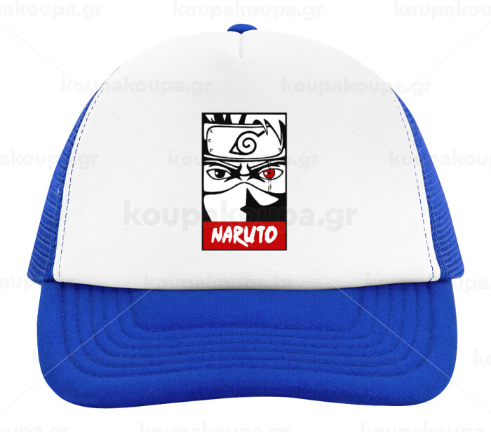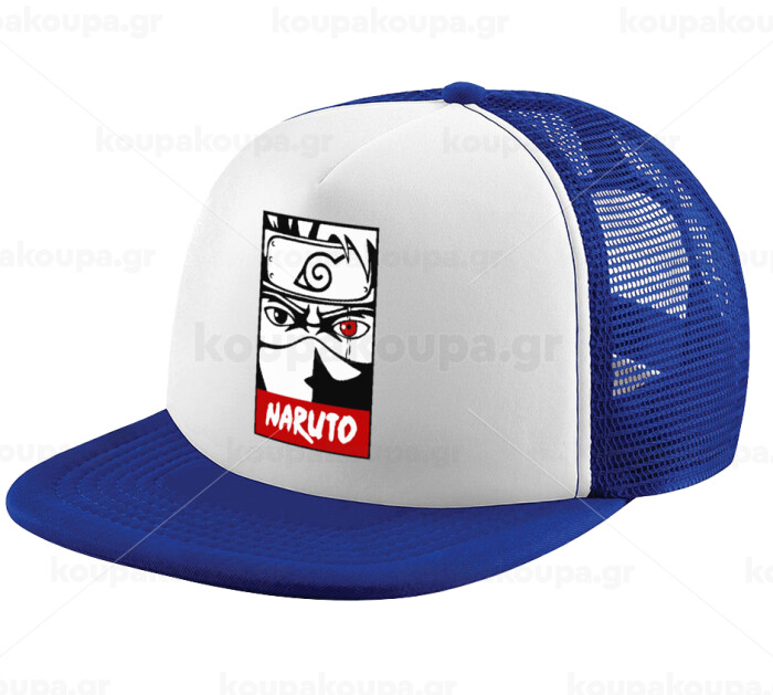 Naruto anime, Child's Soft Trucker Hat with Blue/White Mesh (POLYESTER, CHILD, ONE SIZE)