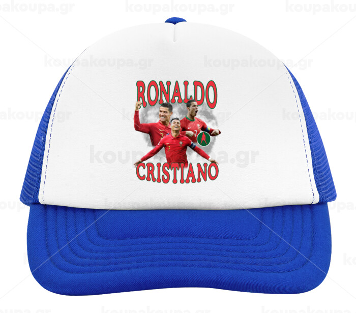 Cristiano Ronaldo, Child's Soft Trucker Hat with Blue/White Mesh (POLYESTER, CHILD, ONE SIZE)