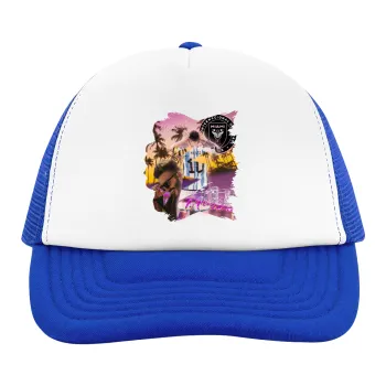 Lionel Messi Miami, Child's Soft Trucker Hat with Blue/White Mesh (POLYESTER, CHILD, ONE SIZE)