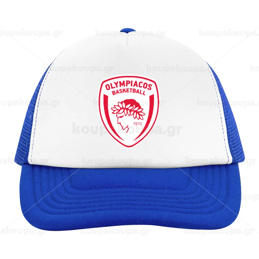 Olympiacos B.C., Child's Soft Trucker Hat with Blue/White Mesh (POLYESTER, CHILD, ONE SIZE)