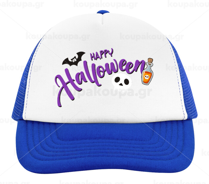 Happy Halloween (Χαλοουίν), Child's Soft Trucker Hat with Blue/White Mesh (POLYESTER, CHILD, ONE SIZE)