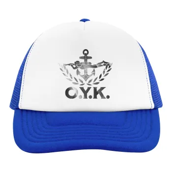 Ο.Υ.Κ., Child's Soft Trucker Hat with Blue/White Mesh (POLYESTER, CHILD, ONE SIZE)