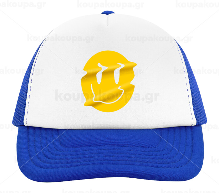Smile avatar distrorted, Child's Soft Trucker Hat with Blue/White Mesh (POLYESTER, CHILD, ONE SIZE)