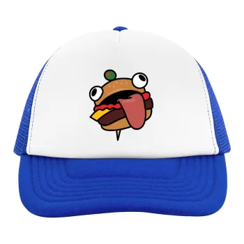 Fortnite Durr Burger, Child's Soft Trucker Hat with Blue/White Mesh (POLYESTER, CHILD, ONE SIZE)