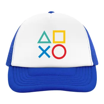 Gaming Symbols, Child's Soft Trucker Hat with Blue/White Mesh (POLYESTER, CHILD, ONE SIZE)