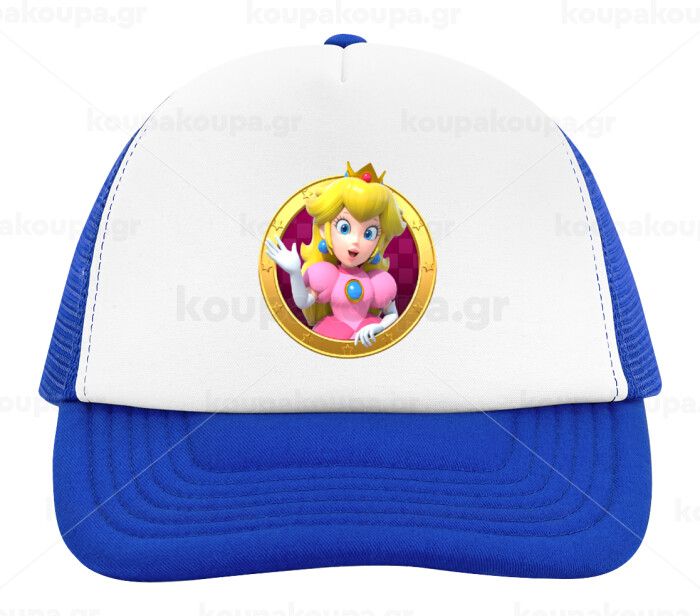 Princess Peach Toadstool, Child's Soft Trucker Hat with Blue/White Mesh (POLYESTER, CHILD, ONE SIZE)